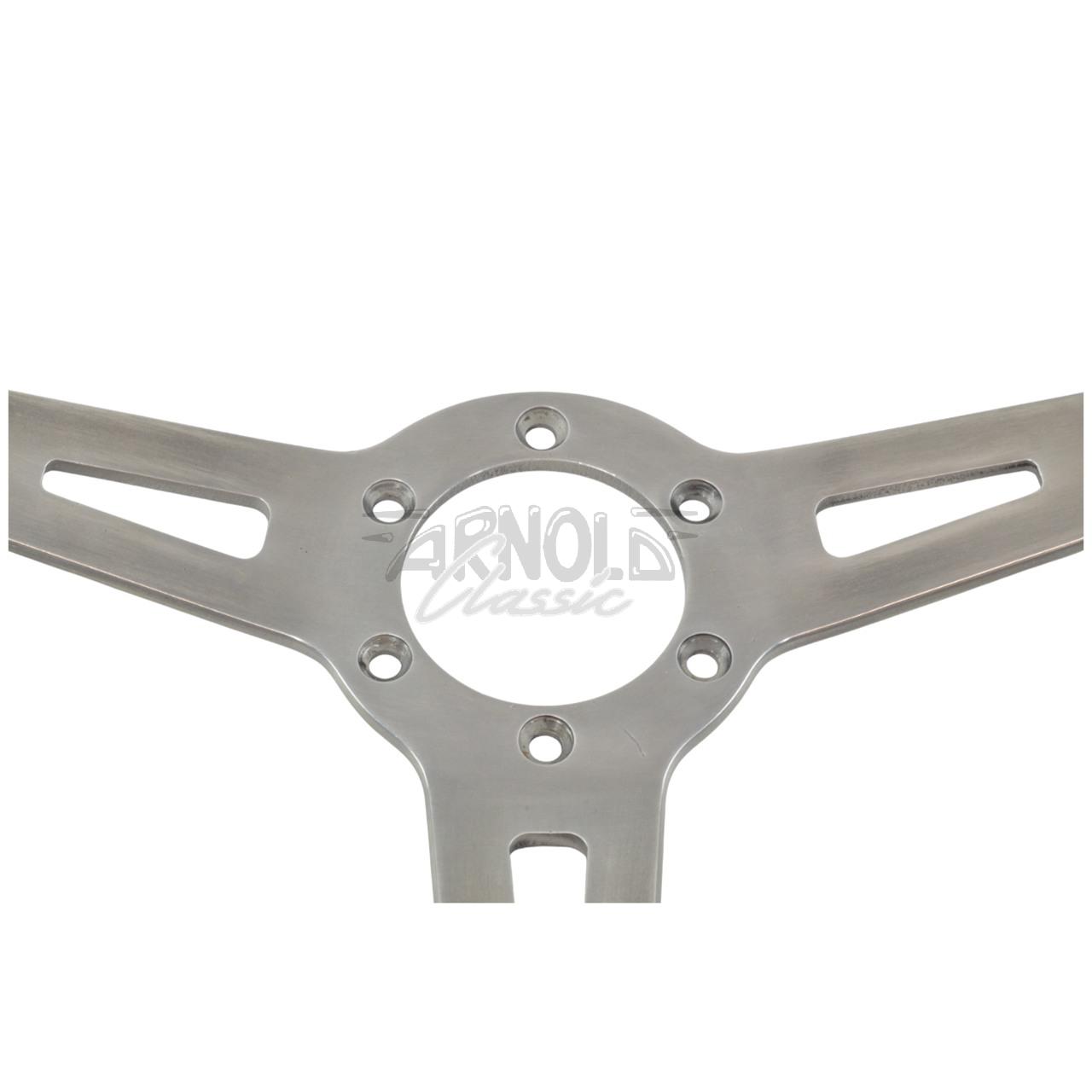 Informações do produto "Volante em couro preto com raios prateados Fiat 124 Spider (79-84) - estofado originalmente"